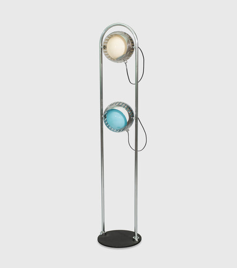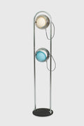 Black metal base and chrome-plated metal structure, diffusers in opal and azure glass.